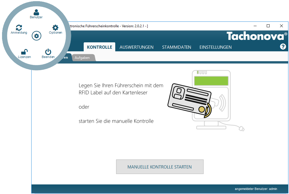 Wird der Führerschein an den Leser gehalten, speichert die Software die Kontrolle mit Datum und Uhrzeit ab. So kann nachgewiesen werden, dass die Kontrollen regelmäßig durchgeführt wurden.