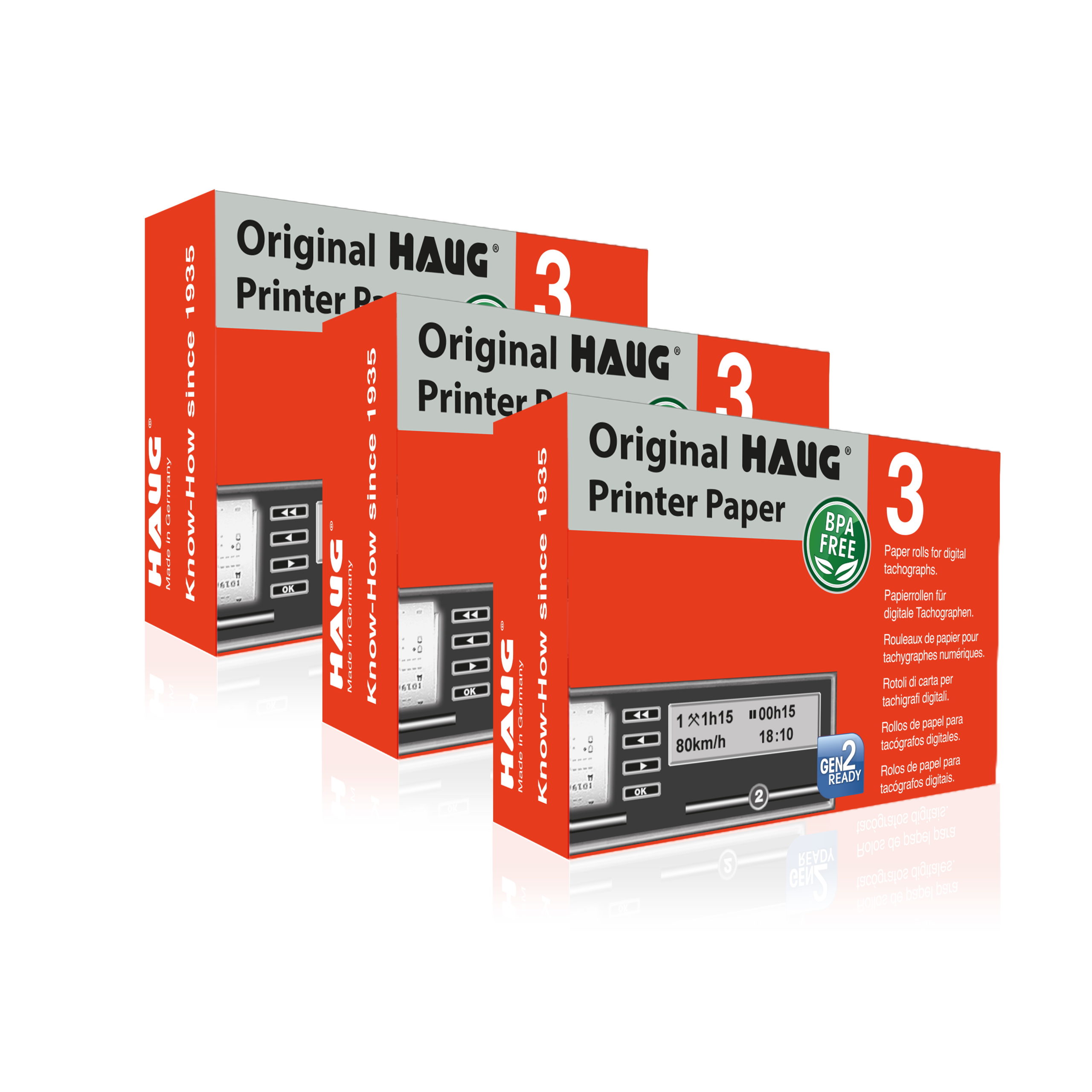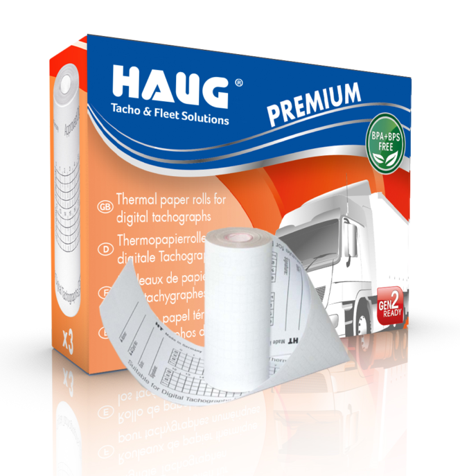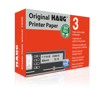 ORIGINAL HAUG Druckerpapier Rollen entsprechen der EU-Spezifikation 1266/2009 und sind für alle z.Zt. auf dem Markt zugelassenen digitalen Tachographen zulässig. Die ORIGINAL HAUG Druckerpapier Rollen sind 10 Jahre unter normalen Lagerbedingungen archivierbar und zeichnen sich durch ein hervorragendes und schnelles Ansprechverhalten (Dynamische Sensitivität) aus